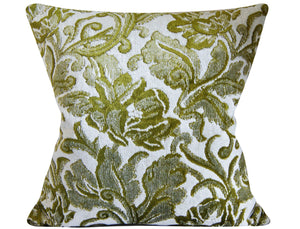 Green floral velvet Pillow Cover - 20X20 inches - vintage velvet - up cycled - salvaged - decorative pillow cover