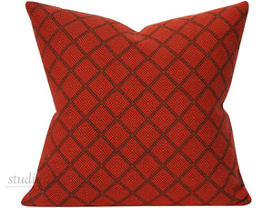 Vintage Wool Orange and Brown Geometric Pattern with Charcoal Brown Linen on Reverse - Decorative Pillow - 20X20 - Astoria Collection